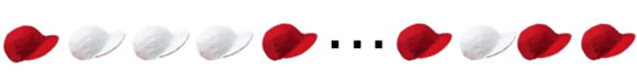 ではどこが本質的に違うか。その違いは2つあります。 もう1つの違いはと言いますと、リュックの場合にはあらかじめ部外者が、少なくとも1人は赤色のリュックを背負っている、とその状況を生徒に教えていることです。 そこでリュックの場合の正解には、この状況説明がキーポイントだったことを思い出していただければ、当設問84もこのあらかじめ決め事ができるという点が、重要なキーポイントだということがわかるわけです。 では、いよいよ正解に至る道筋の解説に入ります。 でも、これをふまえて3人目、5人目・・・と、飛び飛びに前の生徒の色を言っていけば、4人目、6人目・・・の生徒は正解になりますから、少なくとも半分は当たり、さらにこの場合、3人目、5人目・・・の生徒が4人目、6人目・・・と同じ色である場合もありますから、この方法なら半分以上の生徒は表彰状を手にすることができます。 でも、もっと他に方法はないか。そこで解答への手がかりや糸口、突破口を探る方法として、設問73にまとめてある対処法を考えてみますと、当設問の場合は「小さな数字や量で単純化、シンプル化してやってみる」が必須です。